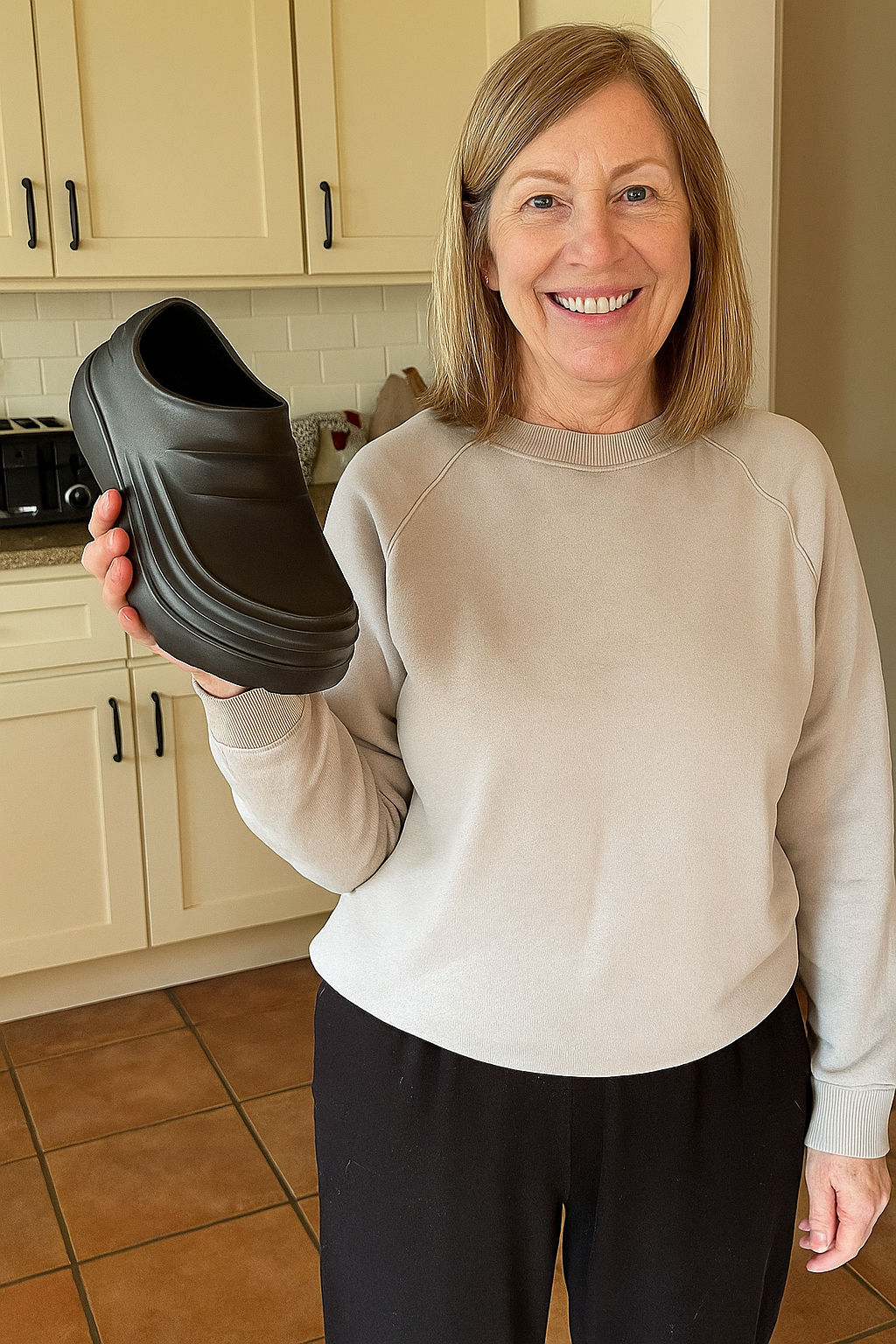 “I have extremely flat feet and joint pain, and most shoes leave me aching after just an hour. These clogs cradle my foot perfectly. No pain in my knees or hips anymore — just comfort. I wear them instead of slippers now.”
