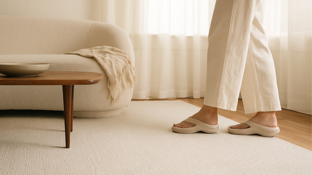 Our Flip Flops are designed for real foot pain—like plantar fasciitis, heel pain, or just long days on your feet. The thick, cushioned sole and deep heel cradle absorb shock and support your arches so you can move without wincing.
